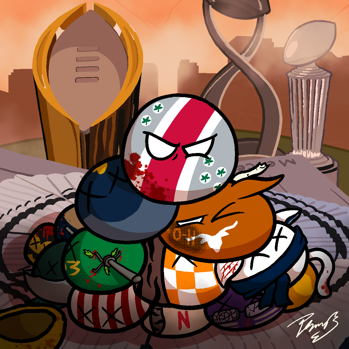 A CFBBall art piece celebrating the Ohio State Buckeyes' 2024 national championship.