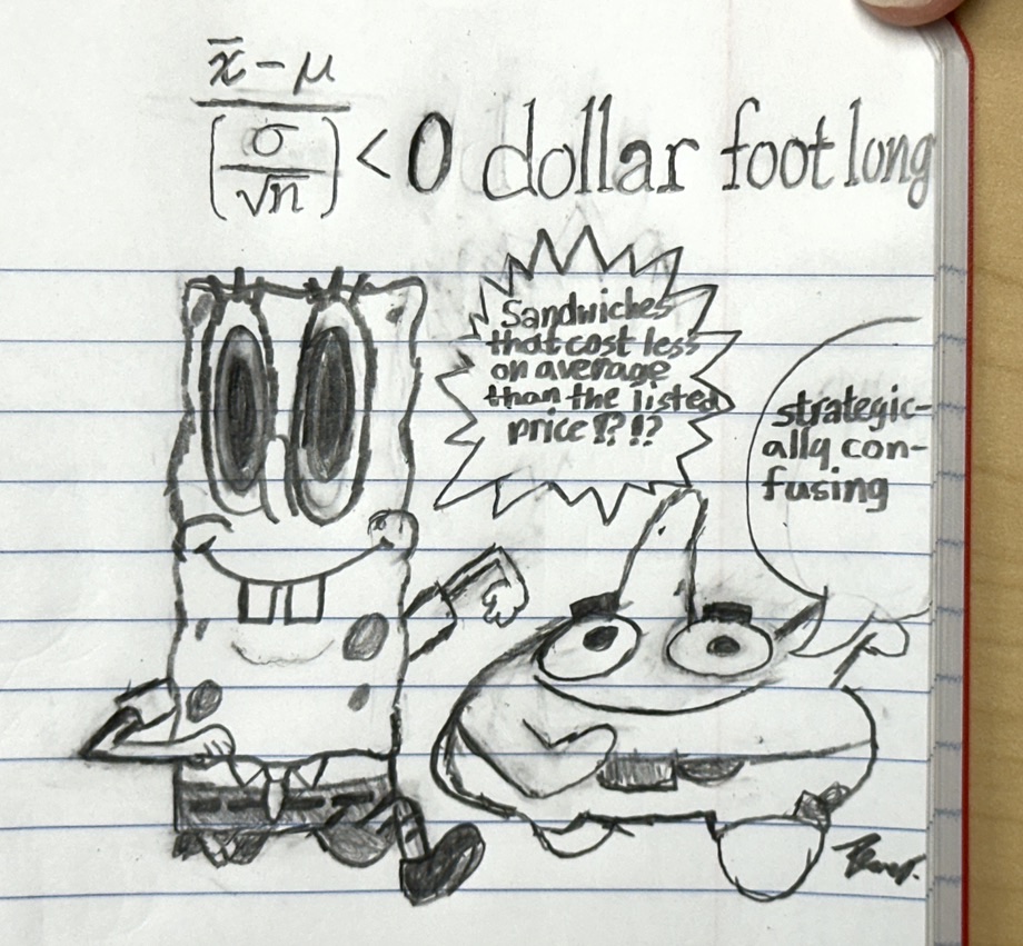 A shitpost I drew in my notebook during a statistics lesson. I was honestly at the end of my rope.